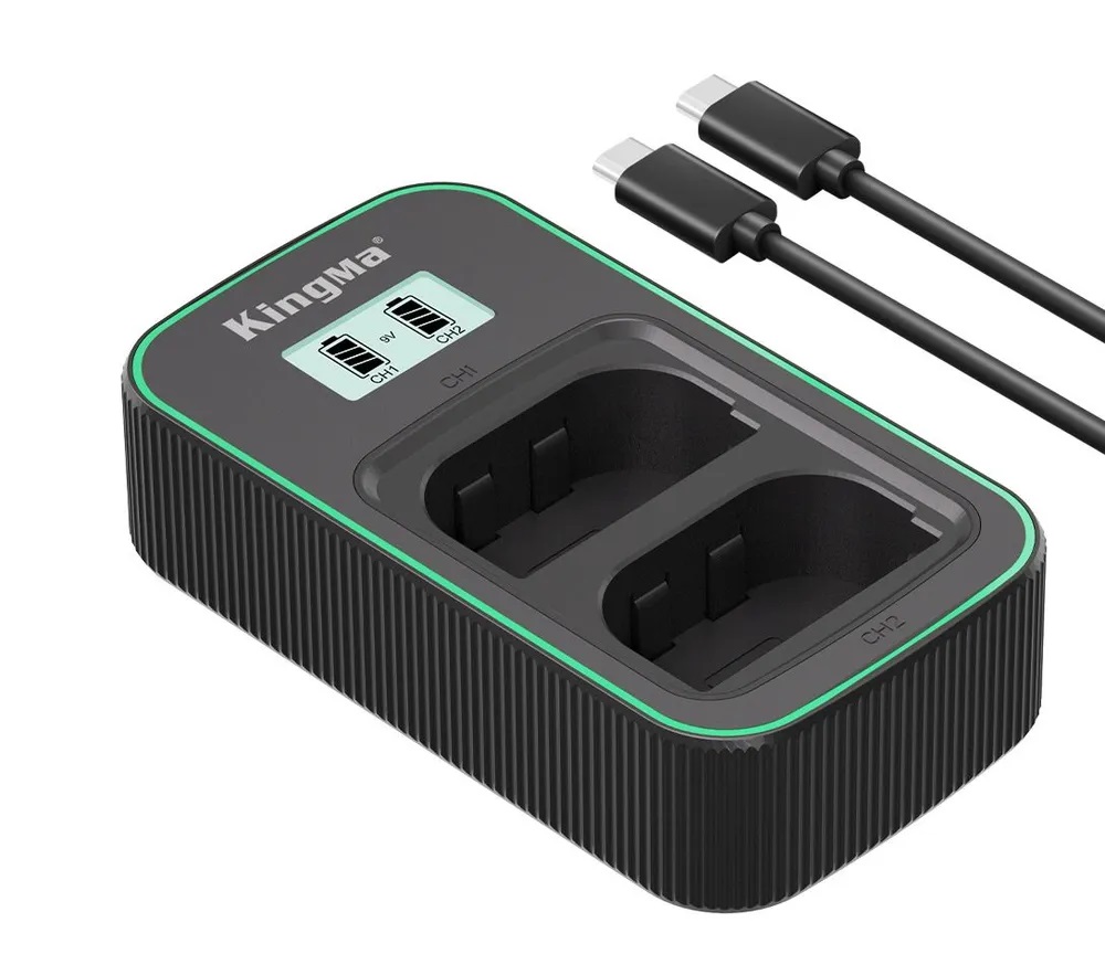 Исторически Canon LP-E6 стал одним из самых популярных форм-факторов аккумуляторов для полнокадровых и APS-C камер, а KingMa сосредоточился на удобных зарядках с LCD индикацией для контроля зарядного процесса без лишних догадок. KingMa 2-постовое устройство, как BM058, позволяет экономить время, показывая прогресс зарядки в процентах и обеспечивая стабильный ток заряда, что снижает износ батарей и улучшает стопы ДД при последующей работе камеры.