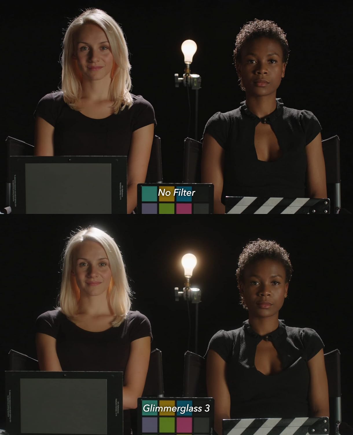 Толщина плотности 1/4 обеспечивает мягкое размытие морщин и дефектов кожи без потери резкости по контуру, а эффект Glimmerglass добавляет деликатное свечение и легкую мягкость на контрастных участках. Фильтр снижает резкость цифровых «жестких» краев и помогает получить более натуральный и органический образ на высокочувствительных сенсорах с расширенным красным спектром.