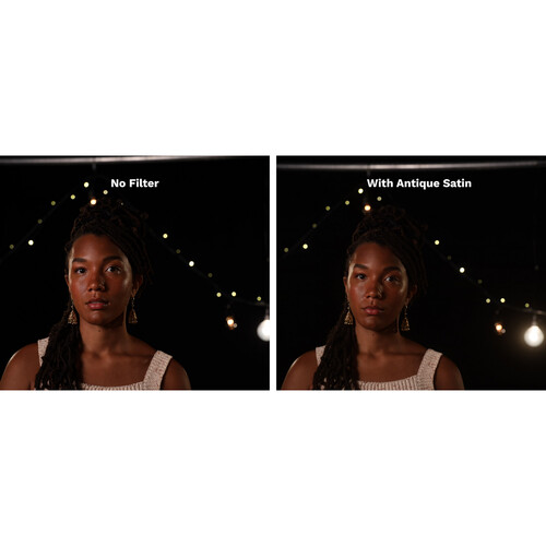 Интересный факт: Tiffen Antique Satin — часть серии Warm Diffusion, которая разрабатывалась, чтобы придать фильмам эстетический эффект старой пленки, помогая операторам создавать атмосферу ретро без цифровых постэффектов. Фильтр прошел тщательную доводку вручную, применяя эксклюзивный процесс ColorCore® для долговечности и устойчивости к царапинам, что высоко ценится в студийных съемках.