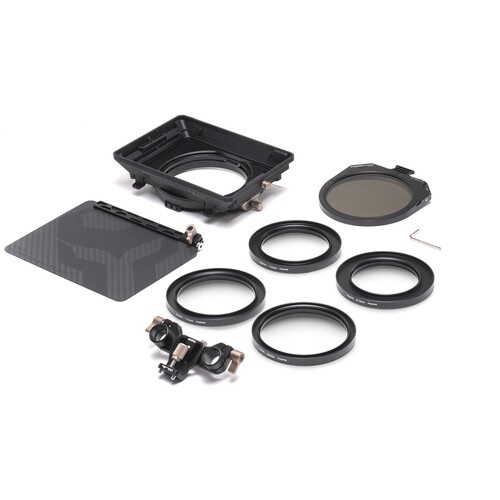 Компендиум Tilta Mirage Matte Box T16 with VND & Circular Polarizer Kit — лёгкий и функциональный аксессуар с переменной ND фильтром и поляризатором для видеосъёмки. Весит около 1,45 кг, в корпусе 95 мм с диаметром зажима, совместим с адаптерами 67-82 мм. Переменный ND-фильтр варьируется от 0.3 до 2.7 стопов, а комплект включает мотор для дистанционной регулировки плотности с беспроводным управлением. Матовый бокс выполнен из магния, нейлона и углеродного волокна, что обеспечивает прочность без перегруза на риг.. Благодаря вставной системе фильтров допускает установку стекол 4x5.65 дюйма и дополнительных кассет для многослойных эффектов. Совместим с объективами на 95 мм диаметра с возможностью использования адаптеров 67, 72, 77 и 82 мм. Идеален для ручных, стабилизационных и дрон-съёмок благодаря аэродинамической конструкции с вентиляцией, снижающей сопротивление ветру. В комплекте идёт карбоновый верхний флаг, адаптеры под популярные диаметры, а также платформа для мотора Nucleus Nano для управления ND фильтром без проводов на дистанции.