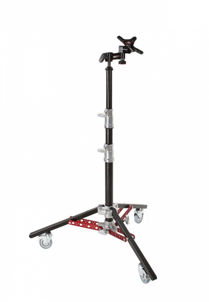 Стойка под монитор Matthews Monitor Stand II обеспечивает надежную поддержку видеомониторов весом до 31,8 кг с регулировкой высоты от 74 до 191 см. Идеальна для размещения мониторов на съемочных площадках и в студиях. Ее вес составляет 7,7 кг, что обеспечивает мобильность и устойчивость. Стильная черная хромированная отделка дополнена 3-дюймовыми колесиками Tente для легкого перемещения, оснащены V-образными тормозами и крепкими резьбовыми хомутами для надежного зажима оборудования. Matthews применил внутреннюю опору Rocky Mountain leg для устойчивости на неровных поверхностях и фиксирующий штырь 5/8 для совместимости с большинством аксессуаров. Стойка выдерживает нагрузки около 31 кг и имеет ширину основания 78 см, что важно для стабильности.
