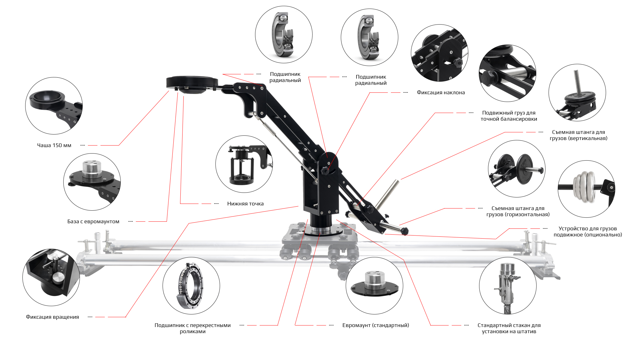 Кран-стрелка Cinebox PRO — компактный операторский кран с длиной 1270 мм и стрелой 700 мм для плавных съемок. Высота корпуса без базы 335 мм, вес — 13.5 кг, крепится на стойки с посадочным местом Ф28 мм. Кран оснащен стандартным стаканом с возможностью замены чаш 100 и 150 мм на Евроадаптер для дополнительного оборудования. Длина от центра вращения до центра чаши — 700 мм, что обеспечивает удобство работы с операторской тележкой miniDolly. Это делает Cinebox PRO отличным выбором для динамичных и точных ригов в кинопроизводстве. Кран совместим со стойками и операторскими тележками разных производителей, включая MovieTech, Panther и собственный Mini Dolly CineBox. Применяется в кино- и ТВ-съемках для создания плавных камерных интерьеров с использованием рельсовых систем и операторских стоек. Cinebox PRO был разработан с учетом максимальной компактности и функциональности, чтобы легко интегрироваться в стандартный операторский сетап, облегчая работу с ригами и фоллоу-фокусом. Особенность модели — возможность быстрой установки без необходимости сборки или разборки, что экономит время на площадке. CineBox предлагает эту стрелу с чехлом и крепежом — попробуйте в работе для стабильных и точных съемок.
