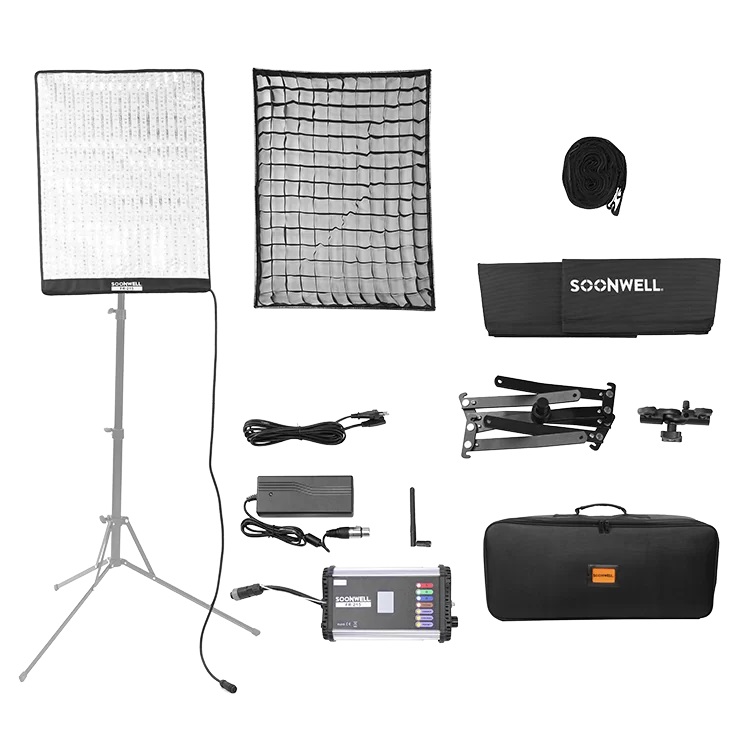 Soonwell FR-215 RGB — гибкая светодиодная панель с мощностью 100 Вт и диапазоном цветовой температуры 2700K–9999K, обеспечивающая высокий CRI 95-98 для точной цветопередачи. Панель размером 61×46 см легко сворачивается и формируется в любую форму, охватывая угол света 10°–360° с плавным диммированием от 0 до 100%. Оснащена 216 RGB светодиодами для мягкого и насыщенного освещения, идеального для кинопроизводства и видеосъемки. Влагозащищенная конструкция и минимальный нагрев позволяют использовать ее в сложных условиях, включая съемки под дождём. Питание возможно от двух источников: AC110-240V и аккумулятора V-mount, что делает ее мобильной и удобной в полевых условиях. Световую панель можно объединять в световые стены с контролем по каналам, расширяя творческие возможности. За счет гибкости и контроля яркости быстро адаптируется под любые задачи, от интервью до художественных постановок. Интересно, что Soonwell FR-215 применялась в различных кинопроектах, благодаря сочетанию гибкости и высокой цветопередачи, облегчая работу операторов с динамичными источниками света. Soonwell предлагает продуманное решение в цветном LED-свете — протестируйте удобство и качество в работе с этой панелью уже сейчас.